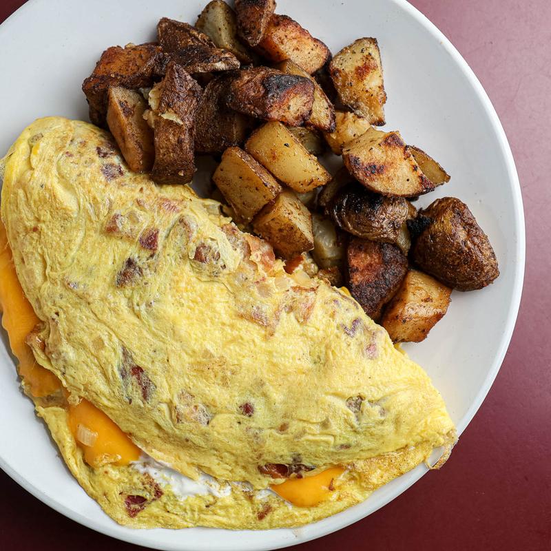 Farm eggs any style, choice of grilled bacon, sausage or ham, choice of cheese and your bagel.